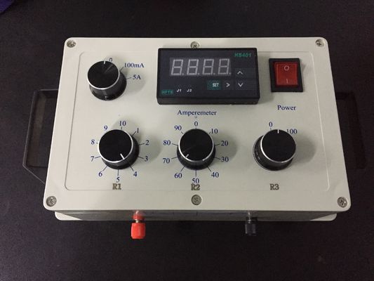 Armatürdeki lamba, Şekil C.3'te gösterildiği gibi test devresi ile değiştirilir. Test, kontrol devresi, armatür ve kontrol donanımı ile taslak geçirmez muhafazanın ortam sıcaklığında dengelenerek başlatılır. Direnç R'yi değiştirerek, lamba akımı normal lamba akımının iki katına eşit bir değere ayarlanır. Daha fazla R ayarı yapılmaz.